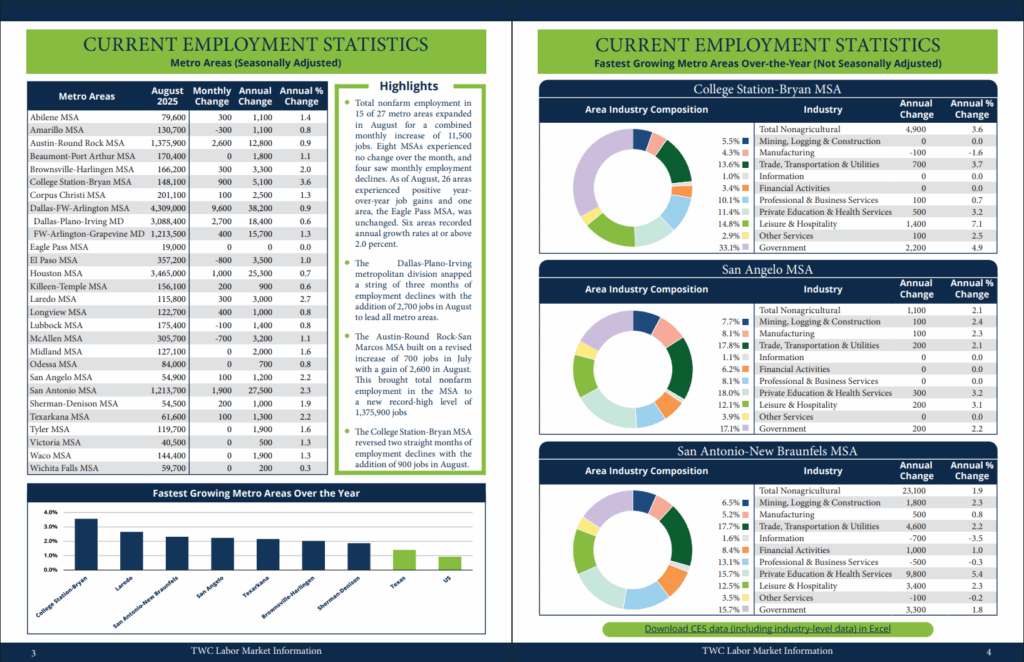 In 2021, I redesigned the Texas Labor Market Review, a monthly publication released by Texas’ Labor Market Information department. For the next four years, I was responsible for the recurring layout and design work on the review. I published the document online each month at TexasLMI.com, accompanying it with a govDelivery announcement to approximately 30,000 subscribers.